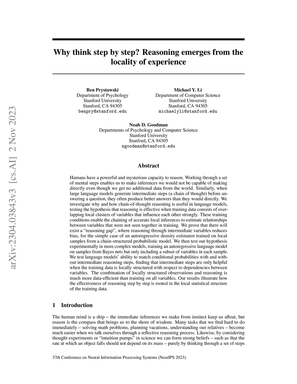 Why think step by step? Reasoning emerges from the locality of