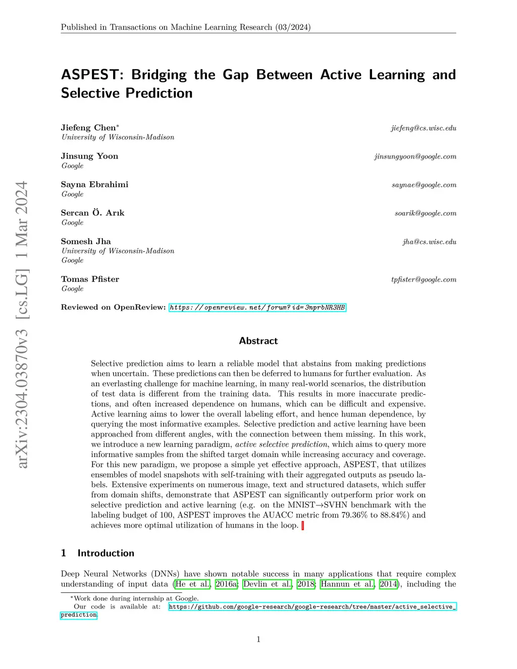 ASPEST: Bridging the Gap Between Active Learning and Selective
