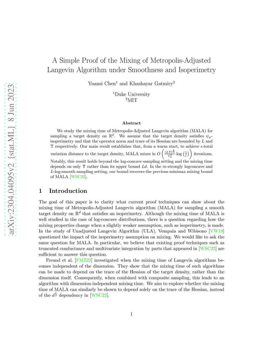 A Simple Proof of the Mixing of Metropolis-Adjusted Langevin Algorithm