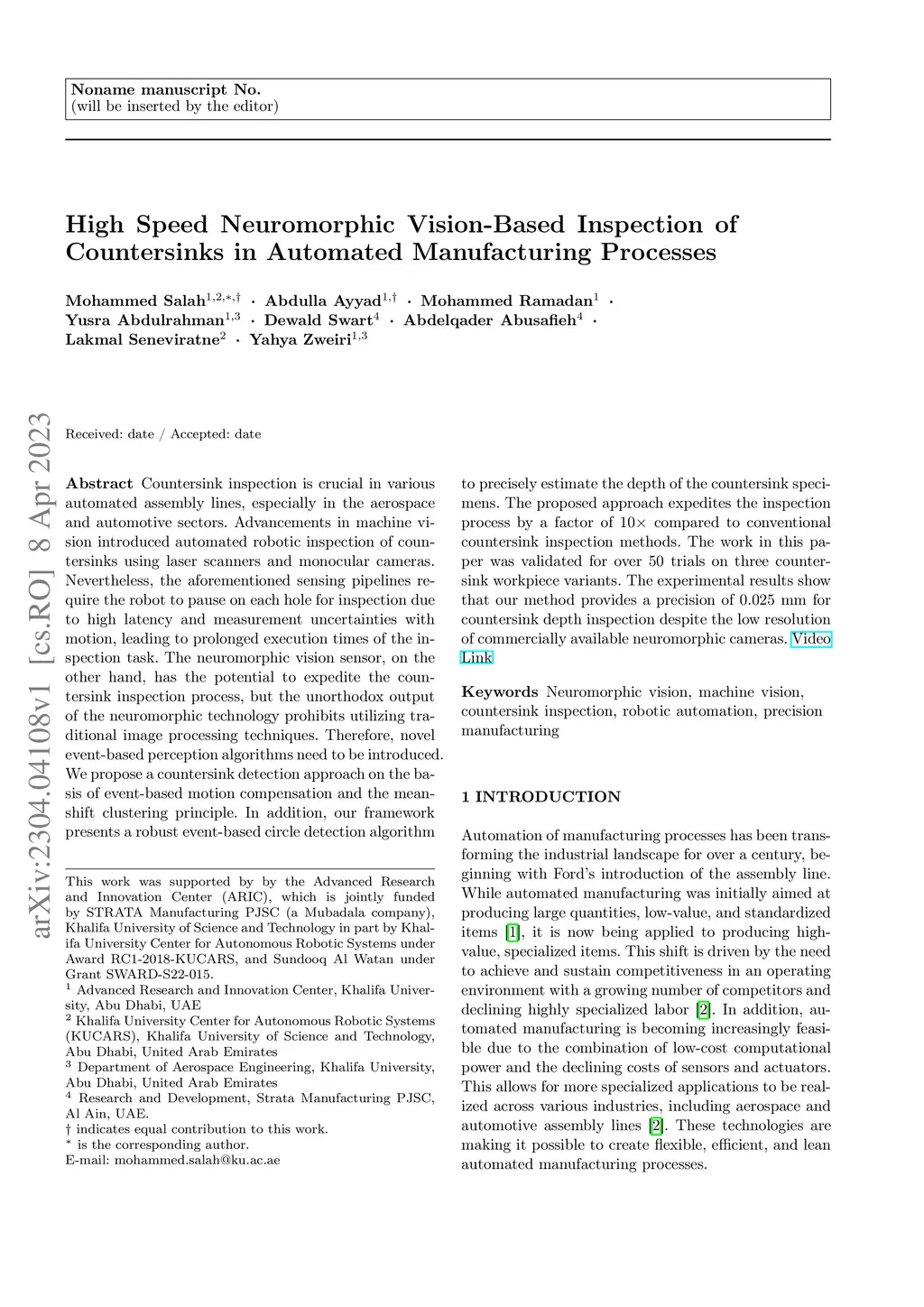 High Speed Neuromorphic Vision-Based Inspection of Countersinks in