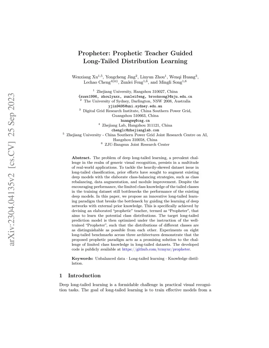 The problem of deep long-tailed learning, a prevalent challenge in the realm of generic visual recognition, persists in a multitude of real-world applications. To tackle the heavily-skewed dataset issue in long-tailed classification, prior efforts have sought to augment existing deep models with the elaborate class-balancing strategies, such as class rebalancing, data augmentation, and module improvement. Despite the encouraging performance, the limited class knowledge of the tailed classes in the training dataset still bottlenecks the performance of the existing deep models. In this paper, we propose an innovative long-tailed learning paradigm that breaks the bottleneck by guiding the learning of deep networks with external prior knowledge. This is specifically achieved by devising an elaborated ``prophetic'' teacher, termed as ``Propheter'', that aims to learn the potential class distributions. The target long-tailed prediction model is then optimized under the instruction of the well-trained ``Propheter'', such that the distributions of different classes are as distinguishable as possible from each other. Experiments on eight long-tailed benchmarks across three architectures demonstrate that the proposed prophetic paradigm acts as a promising solution to the challenge of limited class knowledge in long-tailed datasets. The developed code is publicly available at \url{https://github.com/tcmyxc/propheter}.