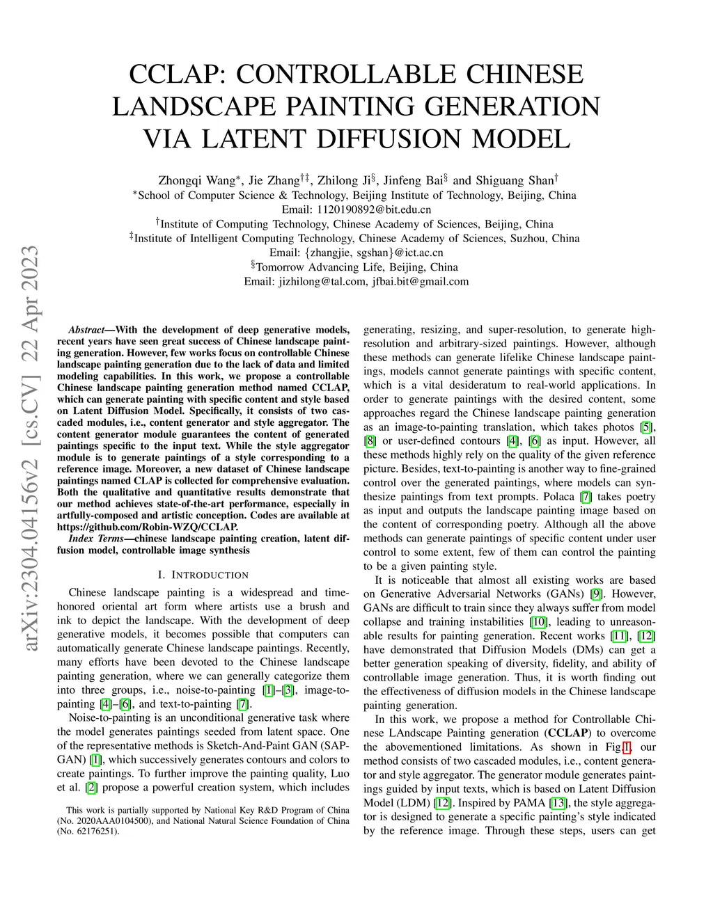 CCLAP: Controllable Chinese Landscape Painting Generation via Latent Diffusion Model