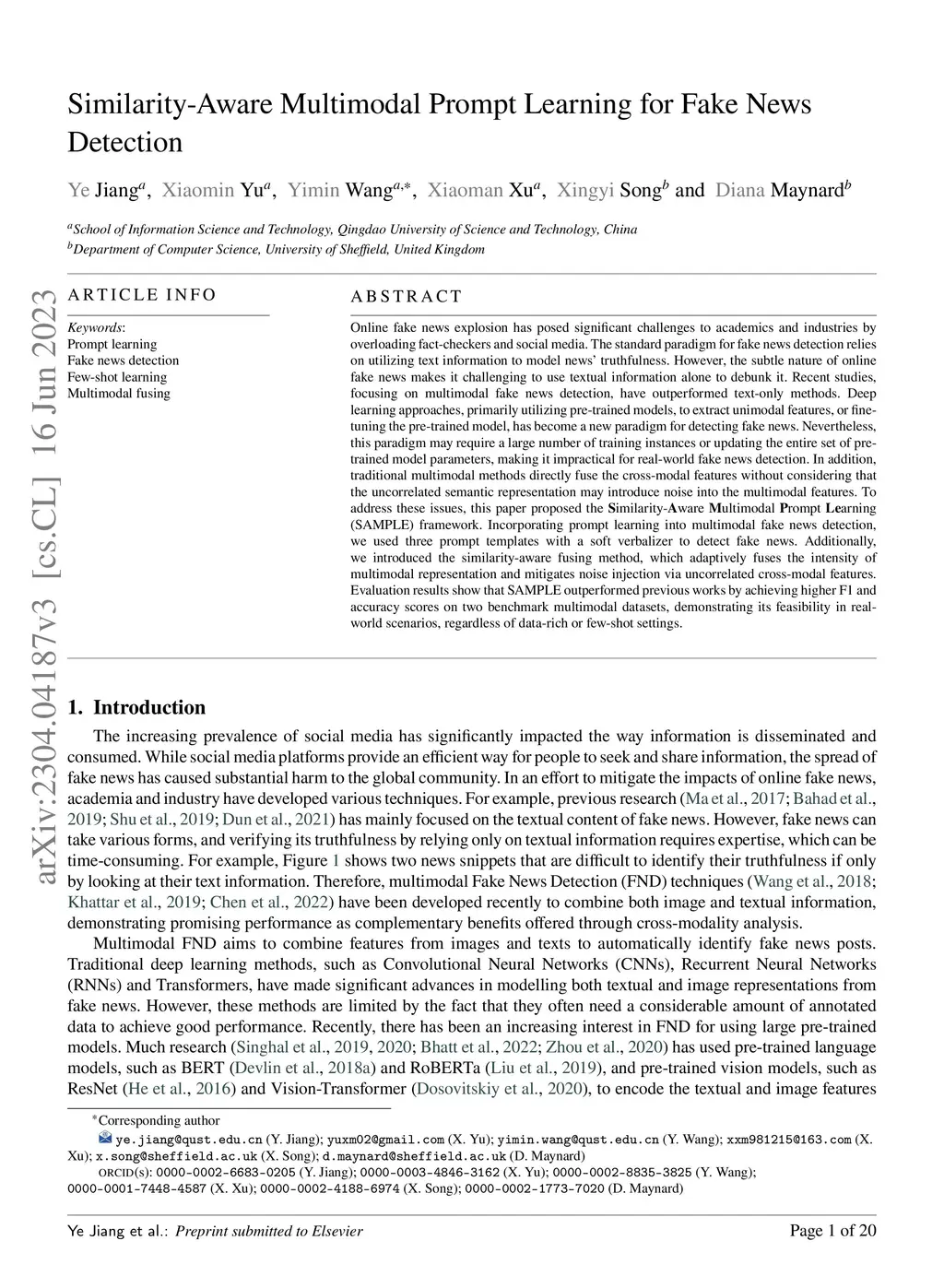 Similarity-Aware Multimodal Prompt Learning for Fake News Detection