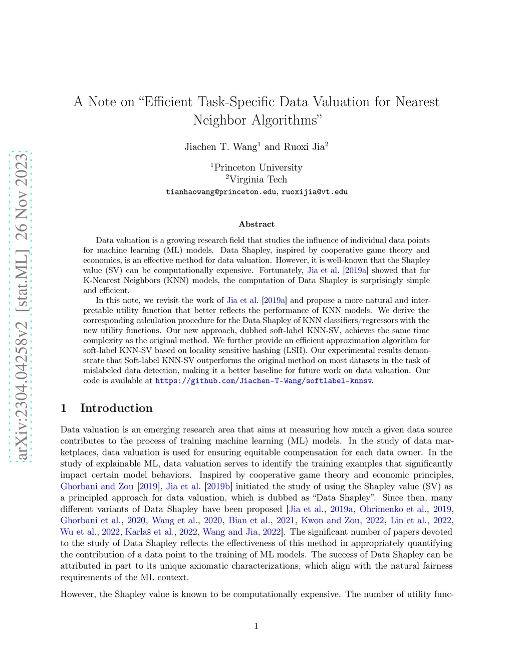 A Note on "Efficient Task-Specific Data Valuation for Nearest Neighbor Algorithms"