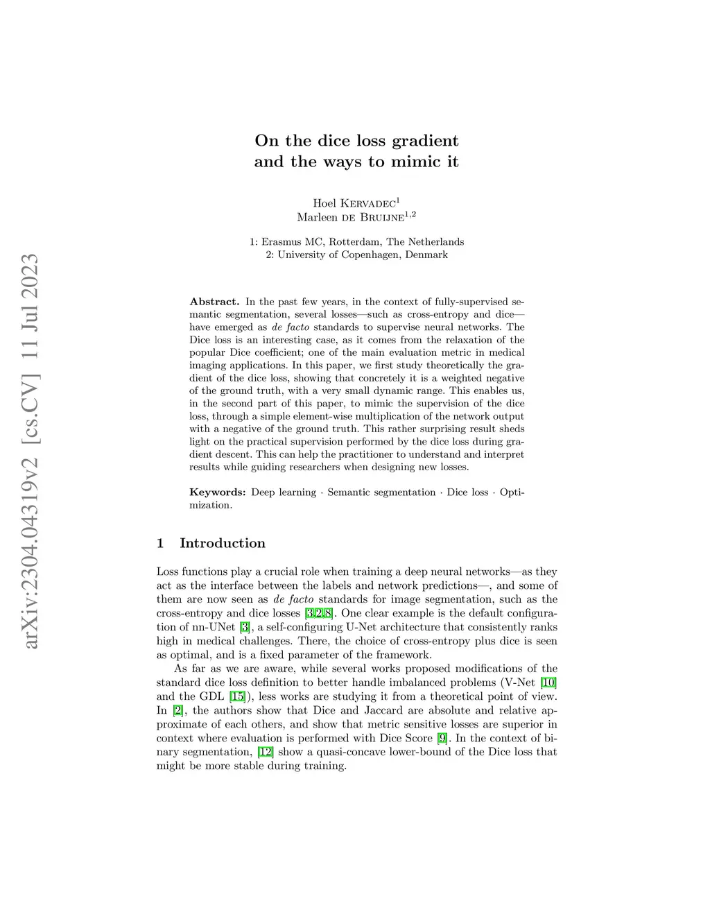 In the past few years, in the context of fully-supervised semantic segmentation, several losses -- such as cross-entropy and dice -- have emerged as de facto standards to supervise neural networks. The Dice loss is an interesting case, as it comes from the relaxation of the popular Dice coefficient; one of the main evaluation metric in medical imaging applications. In this paper, we first study theoretically the gradient of the dice loss, showing that concretely it is a weighted negative of the ground truth, with a very small dynamic range. This enables us, in the second part of this paper, to mimic the supervision of the dice loss, through a simple element-wise multiplication of the network output with a negative of the ground truth. This rather surprising result sheds light on the practical supervision performed by the dice loss during gradient descent. This can help the practitioner to understand and interpret results while guiding researchers when designing new losses.