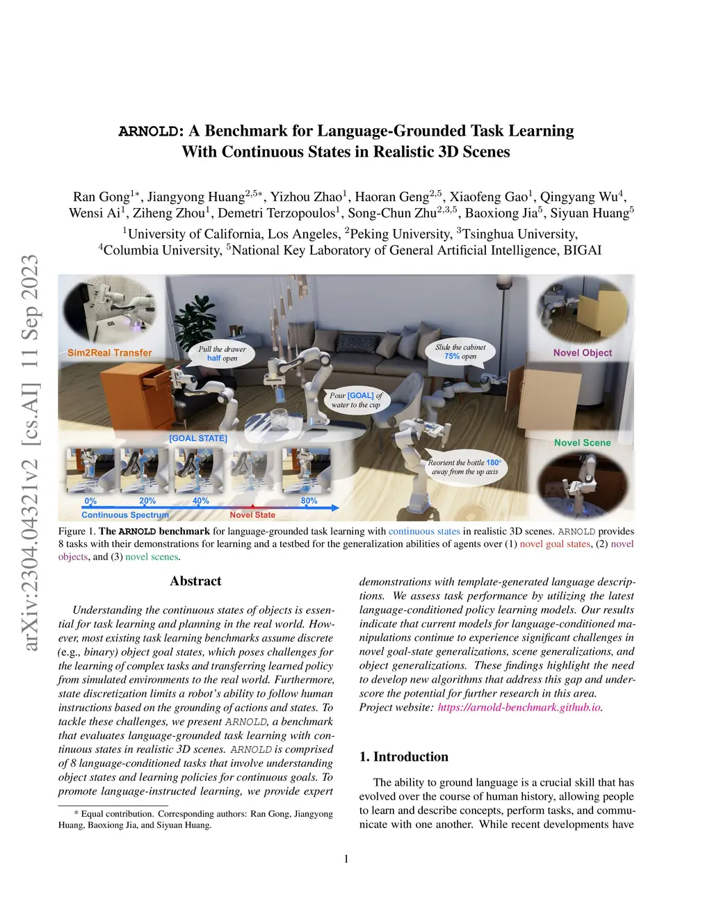 ARNOLD: A Benchmark for Language-Grounded Task Learning With Continuous