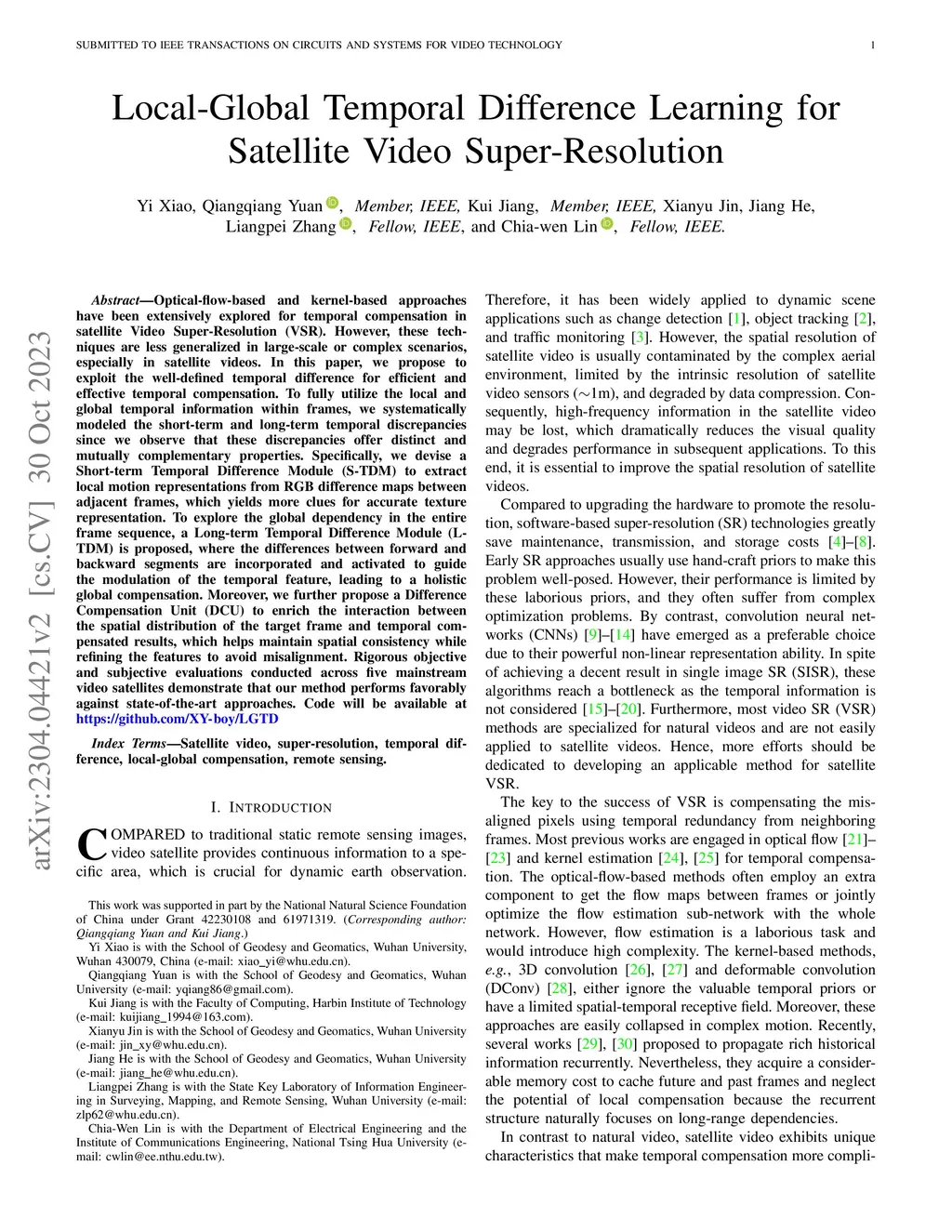 Local-Global Temporal Difference Learning for Satellite Video Super-Resolution
