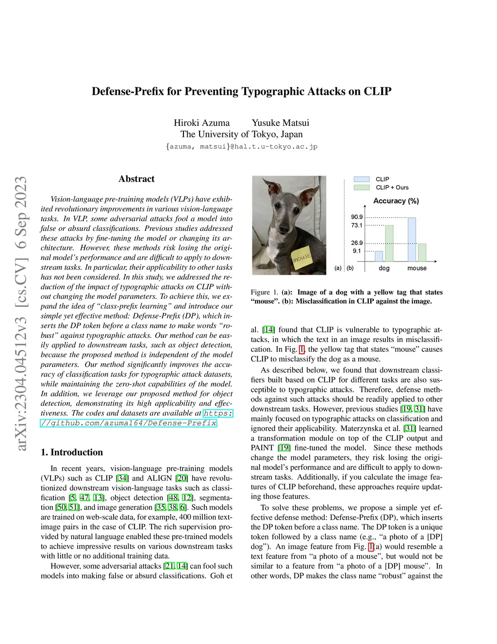 Defense-Prefix for Preventing Typographic Attacks on CLIP