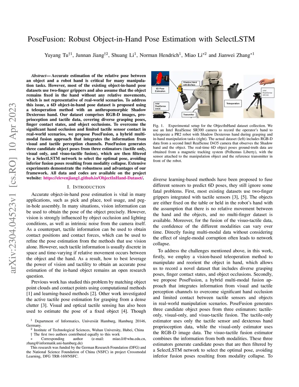 PoseFusion: Robust Object-in-Hand Pose Estimation with SelectLSTM