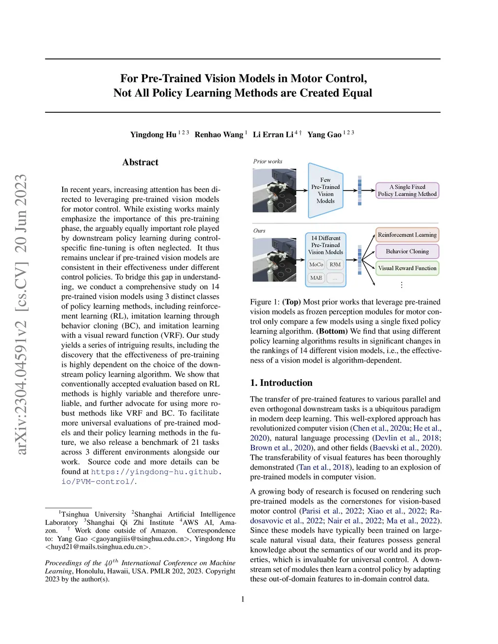 In recent years, increasing attention has been directed to leveraging pre-trained vision models for motor control. While existing works mainly emphasize the importance of this pre-training phase, the arguably equally important role played by downstream policy learning during control-specific fine-tuning is often neglected. It thus remains unclear if pre-trained vision models are consistent in their effectiveness under different control policies. To bridge this gap in understanding, we conduct a comprehensive study on 14 pre-trained vision models using 3 distinct classes of policy learning methods, including reinforcement learning (RL), imitation learning through behavior cloning (BC), and imitation learning with a visual reward function (VRF). Our study yields a series of intriguing results, including the discovery that the effectiveness of pre-training is highly dependent on the choice of the downstream policy learning algorithm. We show that conventionally accepted evaluation based on RL methods is highly variable and therefore unreliable, and further advocate for using more robust methods like VRF and BC. To facilitate more universal evaluations of pre-trained models and their policy learning methods in the future, we also release a benchmark of 21 tasks across 3 different environments alongside our work.