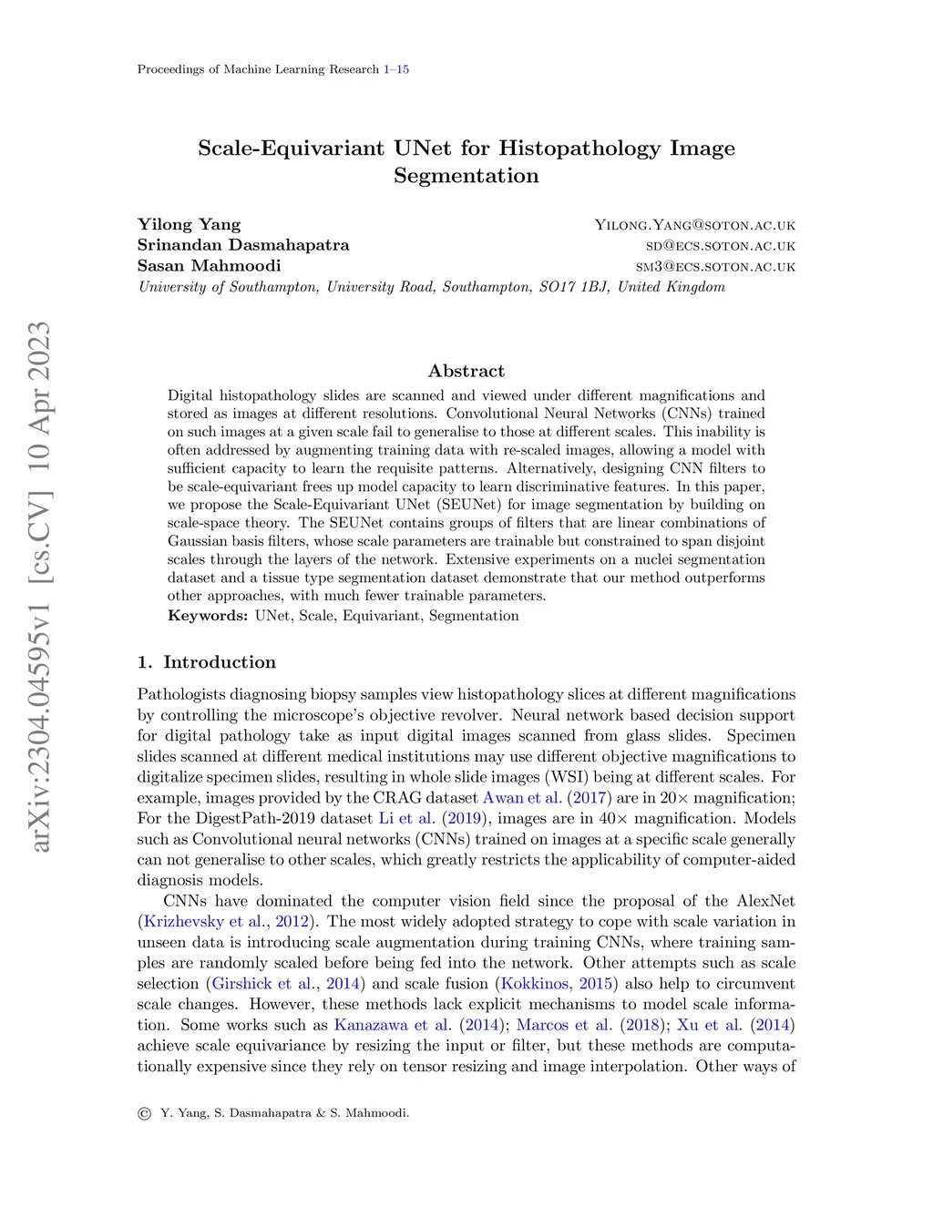 Scale-Equivariant UNet for Histopathology Image Segmentation