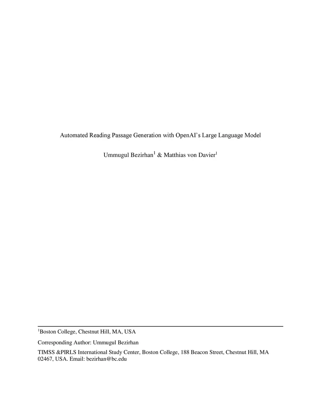 Automated Reading Passage Generation with OpenAI's Large Language Model