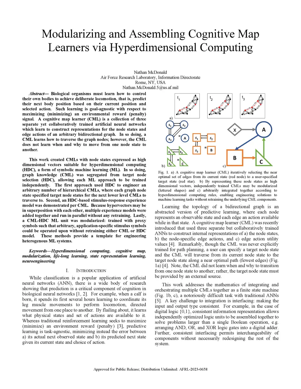 Biological organisms must learn how to control their own bodies to achieve deliberate locomotion, that is, predict their next body position based on their current position and selected action. Such learning is goal-agnostic with respect to maximizing (minimizing) an environmental reward (penalty) signal. A cognitive map learner (CML) is a collection of three separate yet collaboratively trained artificial neural networks which learn to construct representations for the node states and edge actions of an arbitrary bidirectional graph. In so doing, a CML learns how to traverse the graph nodes; however, the CML does not learn when and why to move from one node state to another. This work created CMLs with node states expressed as high dimensional vectors suitable for hyperdimensional computing (HDC), a form of symbolic machine learning (ML). In so doing, graph knowledge (CML) was segregated from target node selection (HDC), allowing each ML approach to be trained independently. The first approach used HDC to engineer an arbitrary number of hierarchical CMLs, where each graph node state specified target node states for the next lower level CMLs to traverse to. Second, an HDC-based stimulus-response experience model was demonstrated per CML. Because hypervectors may be in superposition with each other, multiple experience models were added together and run in parallel without any retraining. Lastly, a CML-HDC ML unit was modularized: trained with proxy symbols such that arbitrary, application-specific stimulus symbols could be operated upon without retraining either CML or HDC model. These methods provide a template for engineering heterogenous ML systems.