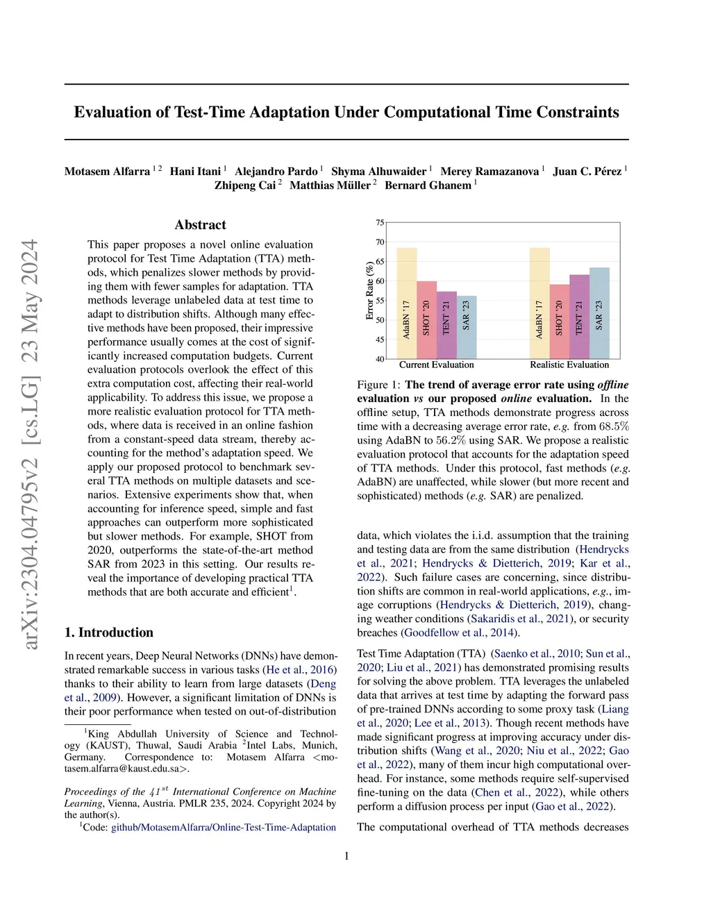 This paper proposes a novel online evaluation protocol for Test Time Adaptation (TTA) methods, which penalizes slower methods by providing them with fewer samples for adaptation. TTA methods leverage unlabeled data at test time to adapt to distribution shifts. Although many effective methods have been proposed, their impressive performance usually comes at the cost of significantly increased computation budgets. Current evaluation protocols overlook the effect of this extra computation cost, affecting their real-world applicability. To address this issue, we propose a more realistic evaluation protocol for TTA methods, where data is received in an online fashion from a constant-speed data stream, thereby accounting for the method's adaptation speed. We apply our proposed protocol to benchmark several TTA methods on multiple datasets and scenarios. Extensive experiments show that, when accounting for inference speed, simple and fast approaches can outperform more sophisticated but slower methods. For example, SHOT from 2020, outperforms the state-of-the-art method SAR from 2023 in this setting. Our results reveal the importance of developing practical TTA methods that are both accurate and efficient.
