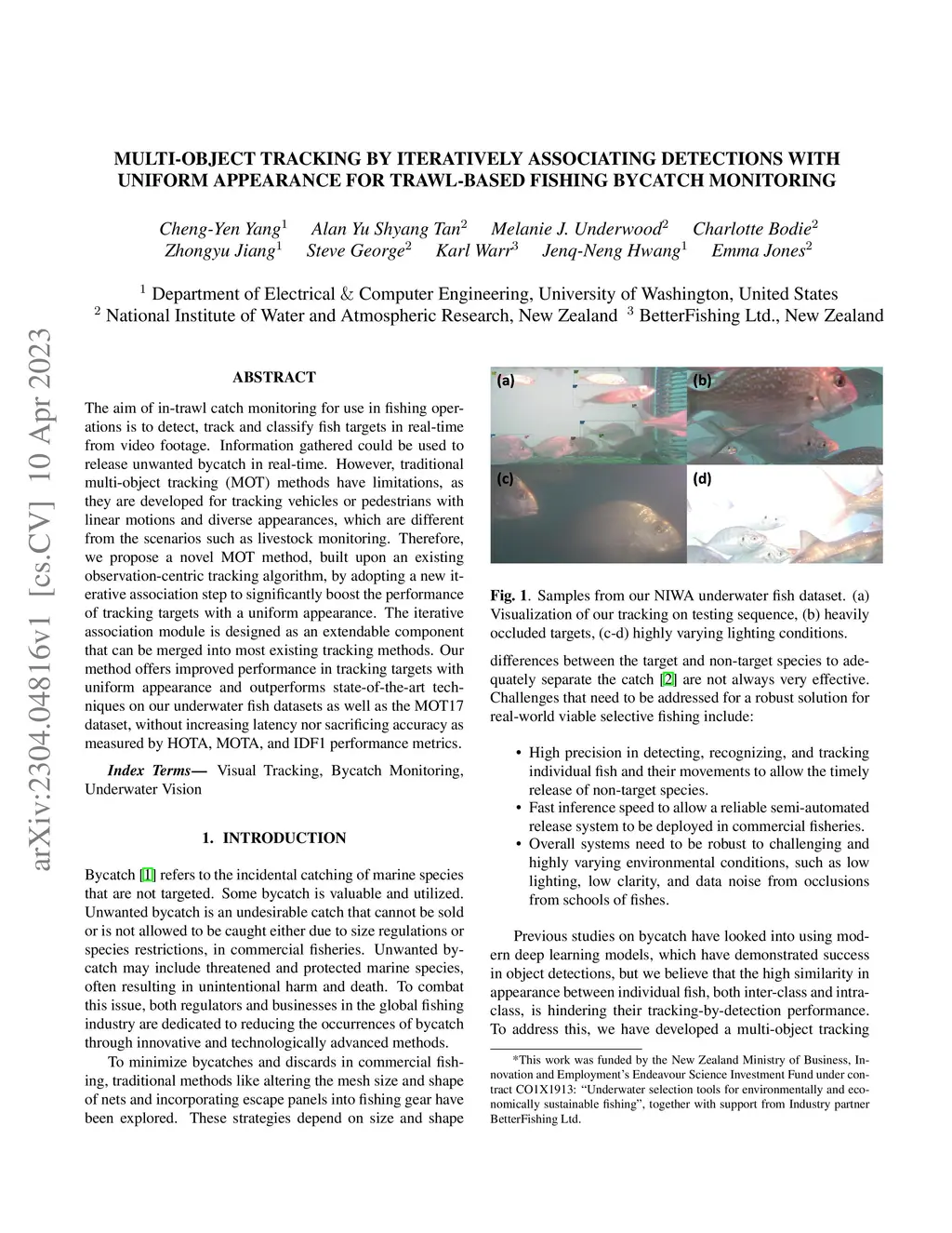 The aim of in-trawl catch monitoring for use in fishing operations is to detect, track and classify fish targets in real-time from video footage. Information gathered could be used to release unwanted bycatch in real-time. However, traditional multi-object tracking (MOT) methods have limitations, as they are developed for tracking vehicles or pedestrians with linear motions and diverse appearances, which are different from the scenarios such as livestock monitoring. Therefore, we propose a novel MOT method, built upon an existing observation-centric tracking algorithm, by adopting a new iterative association step to significantly boost the performance of tracking targets with a uniform appearance. The iterative association module is designed as an extendable component that can be merged into most existing tracking methods. Our method offers improved performance in tracking targets with uniform appearance and outperforms state-of-the-art techniques on our underwater fish datasets as well as the MOT17 dataset, without increasing latency nor sacrificing accuracy as measured by HOTA, MOTA, and IDF1 performance metrics.