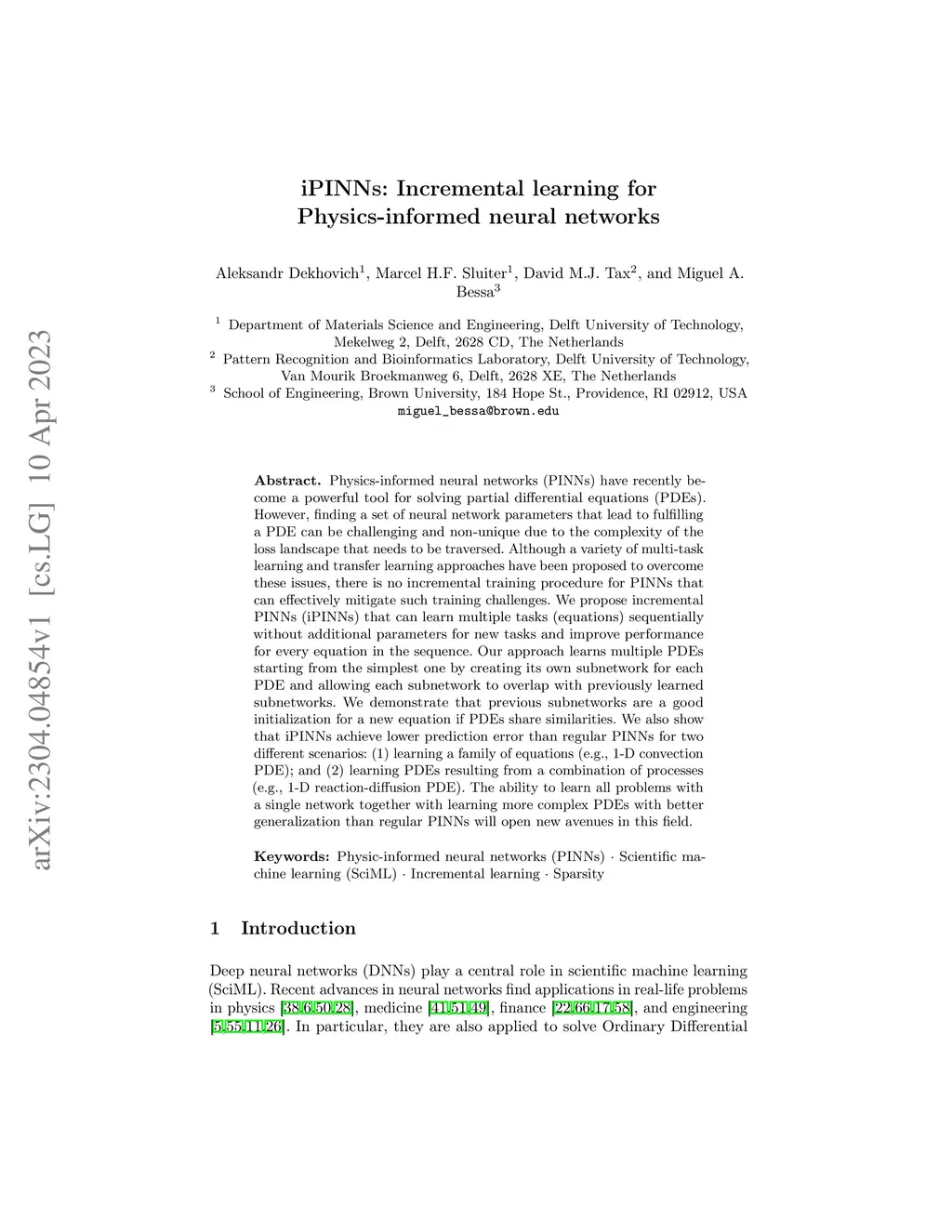 Physics-informed neural networks (PINNs) have recently become a powerful tool for solving partial differential equations (PDEs). However, finding a set of neural network parameters that lead to fulfilling a PDE can be challenging and non-unique due to the complexity of the loss landscape that needs to be traversed. Although a variety of multi-task learning and transfer learning approaches have been proposed to overcome these issues, there is no incremental training procedure for PINNs that can effectively mitigate such training challenges. We propose incremental PINNs (iPINNs) that can learn multiple tasks (equations) sequentially without additional parameters for new tasks and improve performance for every equation in the sequence. Our approach learns multiple PDEs starting from the simplest one by creating its own subnetwork for each PDE and allowing each subnetwork to overlap with previously learned subnetworks. We demonstrate that previous subnetworks are a good initialization for a new equation if PDEs share similarities. We also show that iPINNs achieve lower prediction error than regular PINNs for two different scenarios: (1) learning a family of equations (e.g., 1-D convection PDE); and (2) learning PDEs resulting from a combination of processes (e.g., 1-D reaction-diffusion PDE). The ability to learn all problems with a single network together with learning more complex PDEs with better generalization than regular PINNs will open new avenues in this field.