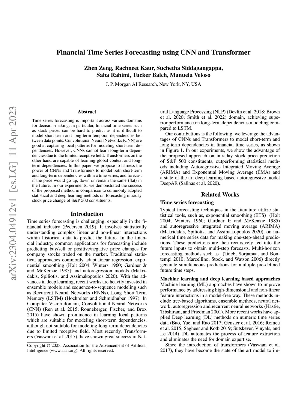 Financial Time Series Forecasting using CNN and Transformer