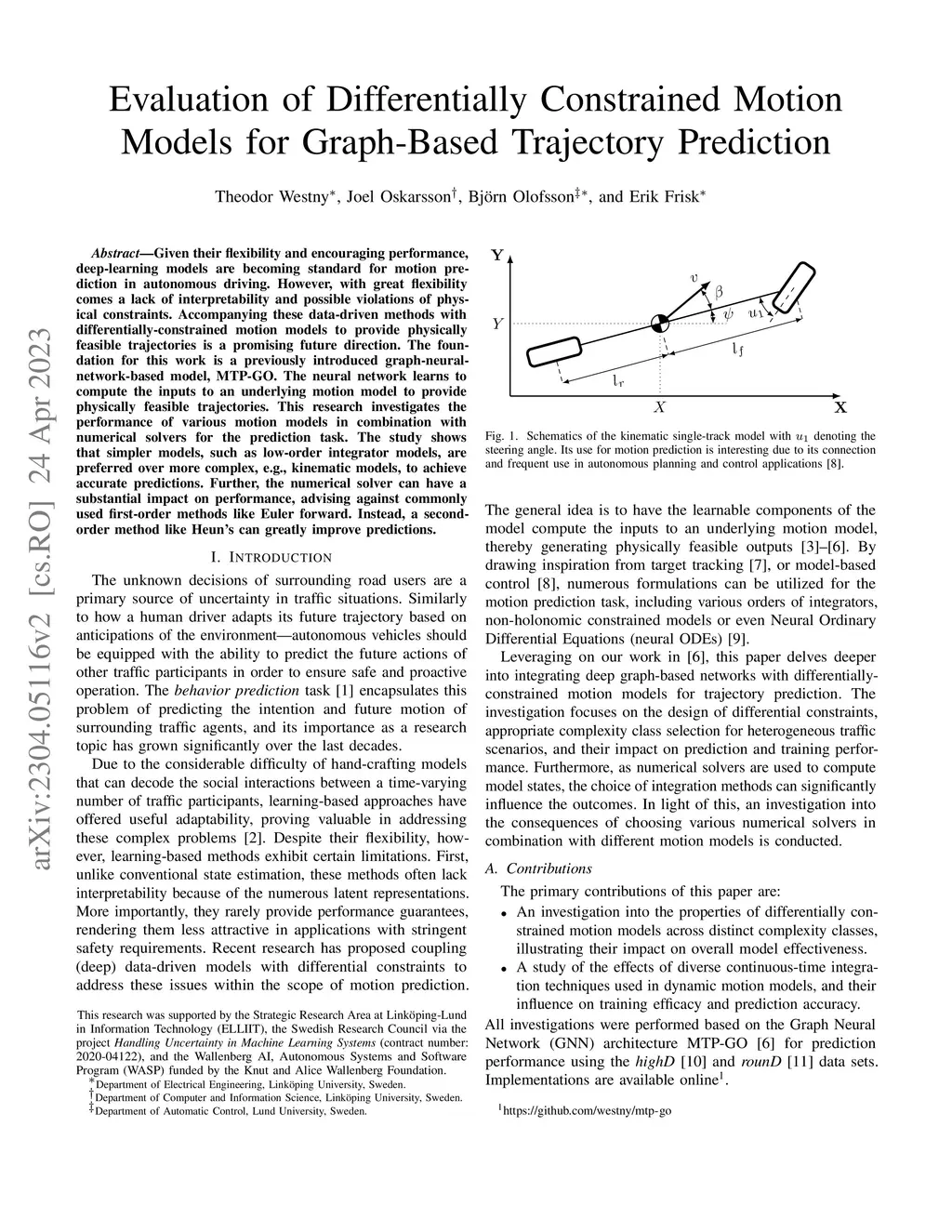 Given their flexibility and encouraging performance, deep-learning models are becoming standard for motion prediction in autonomous driving. However, with great flexibility comes a lack of interpretability and possible violations of physical constraints. Accompanying these data-driven methods with differentially-constrained motion models to provide physically feasible trajectories is a promising future direction. The foundation for this work is a previously introduced graph-neural-network-based model, MTP-GO. The neural network learns to compute the inputs to an underlying motion model to provide physically feasible trajectories. This research investigates the performance of various motion models in combination with numerical solvers for the prediction task. The study shows that simpler models, such as low-order integrator models, are preferred over more complex, e.g., kinematic models, to achieve accurate predictions. Further, the numerical solver can have a substantial impact on performance, advising against commonly used first-order methods like Euler forward. Instead, a second-order method like Heun's can greatly improve predictions.