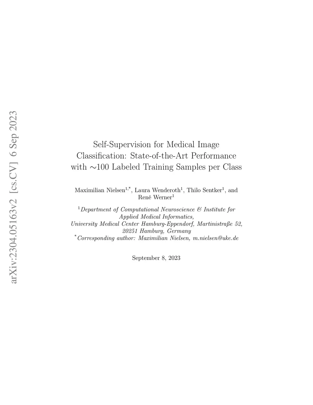 Self-supervision for medical image classification: state-of-the-art performance with ~100 labeled training samples per class