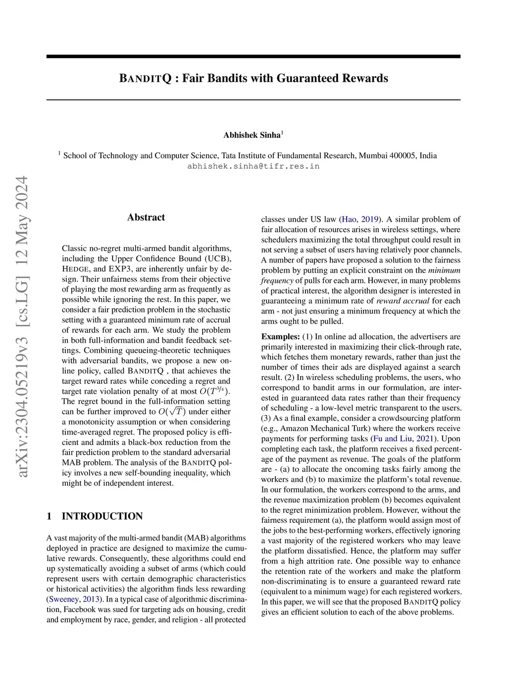 Classic no-regret multi-armed bandit algorithms, including the Upper Confidence Bound (UCB), Hedge, and EXP3, are inherently unfair by design. Their unfairness stems from their objective of playing the most rewarding arm as frequently as possible while ignoring the rest. In this paper, we consider a fair prediction problem in the stochastic setting with a guaranteed minimum rate of accrual of rewards for each arm. We study the problem in both full-information and bandit feedback settings. Combining queueing-theoretic techniques with adversarial bandits, we propose a new online policy, called BanditQ, that achieves the target reward rates while conceding a regret and target rate violation penalty of at most The regret bound in the full-information setting can be further improved to under either a monotonicity assumption or when considering time-averaged regret. The proposed policy is efficient and admits a black-box reduction from the fair prediction problem to the standard adversarial MAB problem. The analysis of the BanditQ policy involves a new self-bounding inequality, which might be of independent interest.