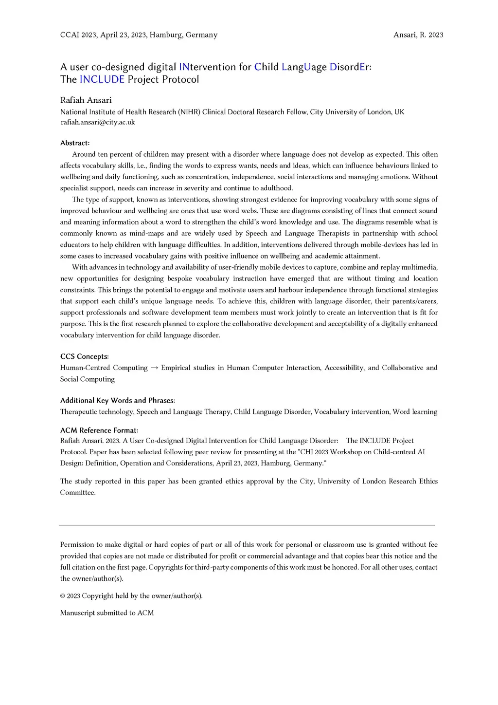 A user co-designed digital INtervention for Child LangUage DisordEr: The
