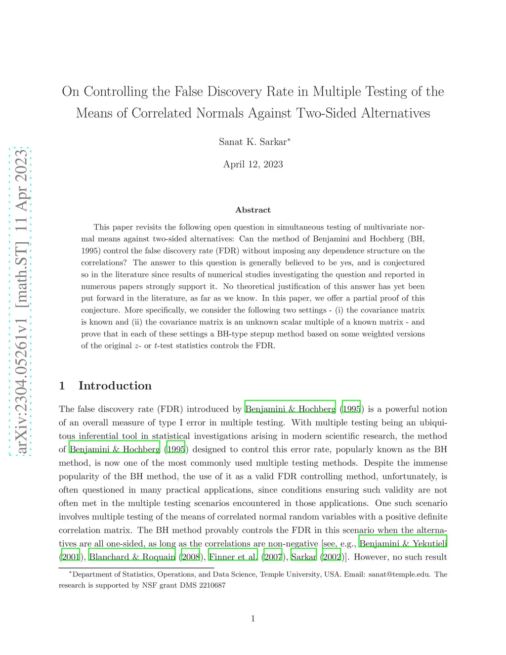 On Controlling the False Discovery Rate in Multiple Testing of the Means