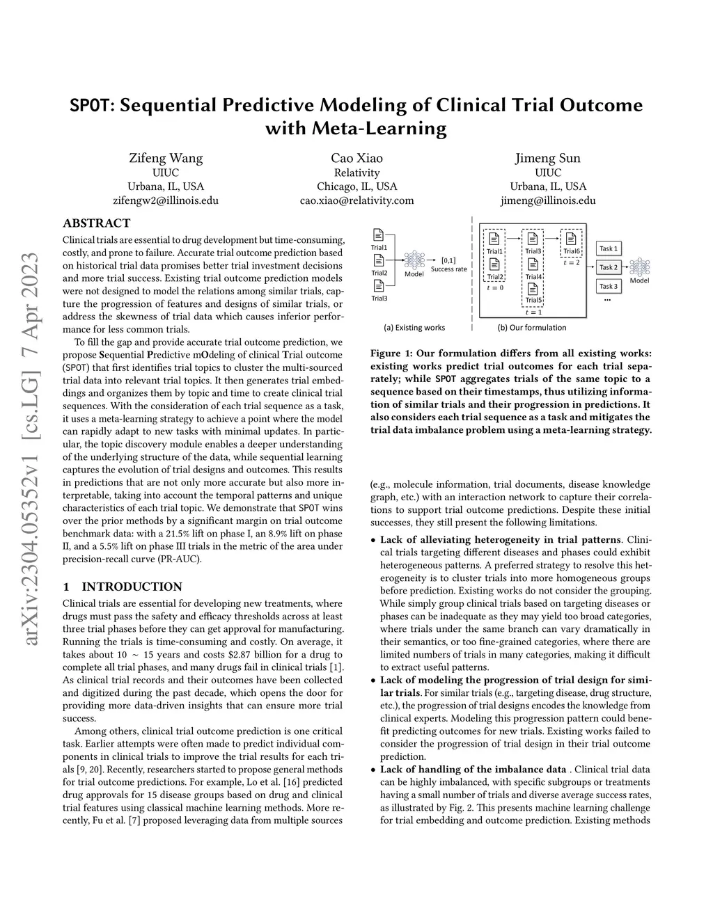 SPOT: Sequential Predictive Modeling of Clinical Trial Outcome with