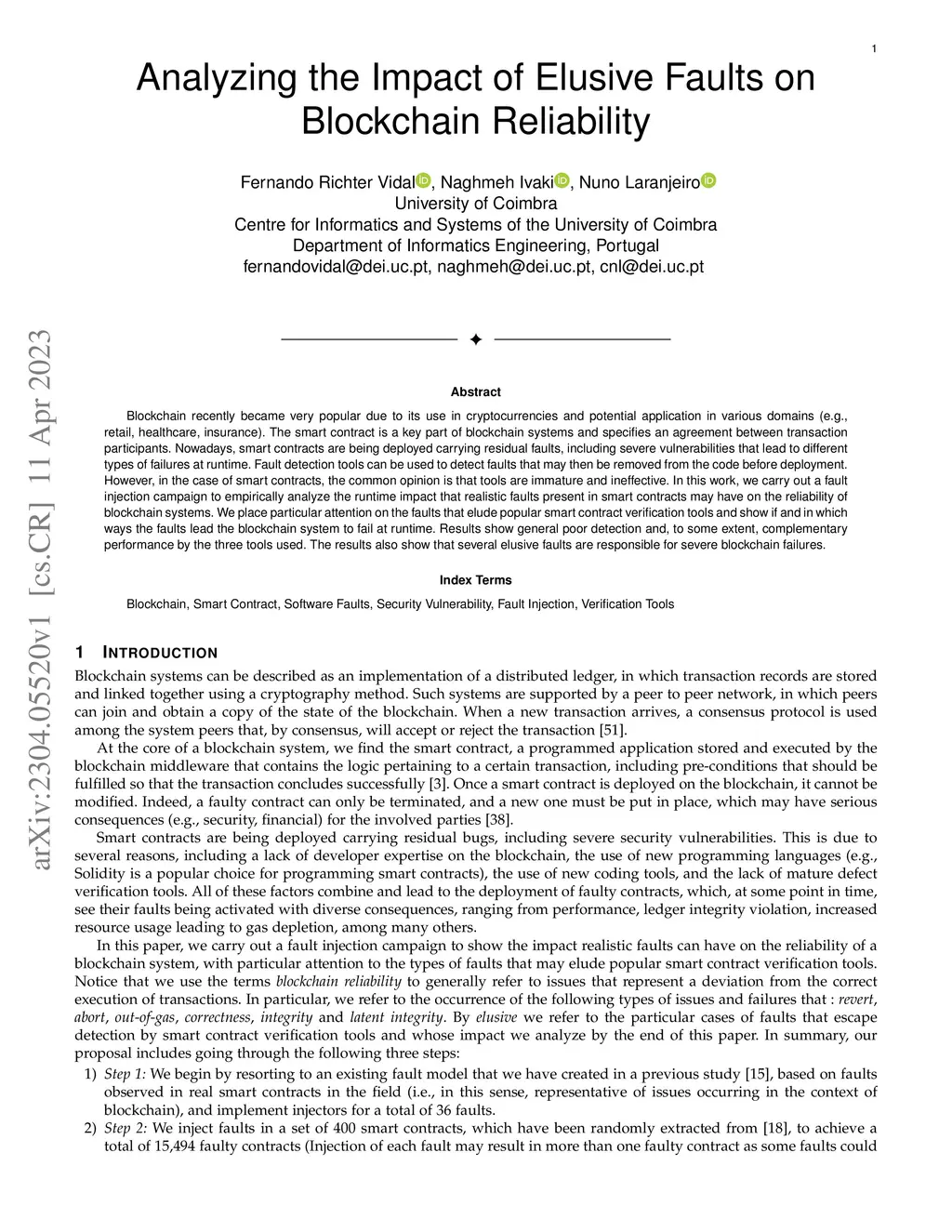 Blockchain recently became very popular due to its use in cryptocurrencies and potential application in various domains (e.g., retail, healthcare, insurance). The smart contract is a key part of blockchain systems and specifies an agreement between transaction participants. Nowadays, smart contracts are being deployed carrying residual faults, including severe vulnerabilities that lead to different types of failures at runtime. Fault detection tools can be used to detect faults that may then be removed from the code before deployment. However, in the case of smart contracts, the common opinion is that tools are immature and ineffective. In this work, we carry out a fault injection campaign to empirically analyze the runtime impact that realistic faults present in smart contracts may have on the reliability of blockchain systems. We place particular attention on the faults that elude popular smart contract verification tools and show if and in which ways the faults lead the blockchain system to fail at runtime. Results show general poor detection and, to some extent, complementary performance by the three tools used. The results also show that several elusive faults are responsible for severe blockchain failures.