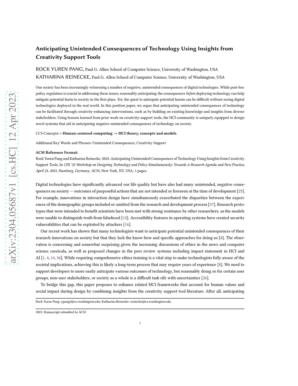 Our society has been increasingly witnessing a number of negative, unintended consequences of digital technologies. While post-hoc policy regulation is crucial in addressing these issues, reasonably anticipating the consequences before deploying technology can help mitigate potential harm to society in the first place. Yet, the quest to anticipate potential harms can be difficult without seeing digital technologies deployed in the real world. In this position paper, we argue that anticipating unintended consequences of technology can be facilitated through creativity-enhancing interventions, such as by building on existing knowledge and insights from diverse stakeholders. Using lessons learned from prior work on creativity-support tools, the HCI community is uniquely equipped to design novel systems that aid in anticipating negative unintended consequences of technology on society.