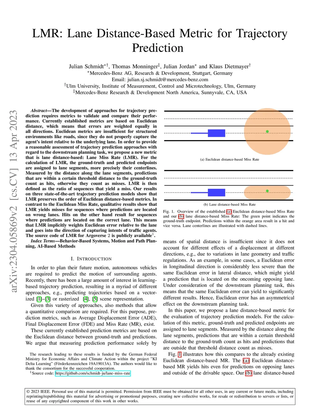 LMR: Lane Distance-Based Metric for Trajectory Prediction