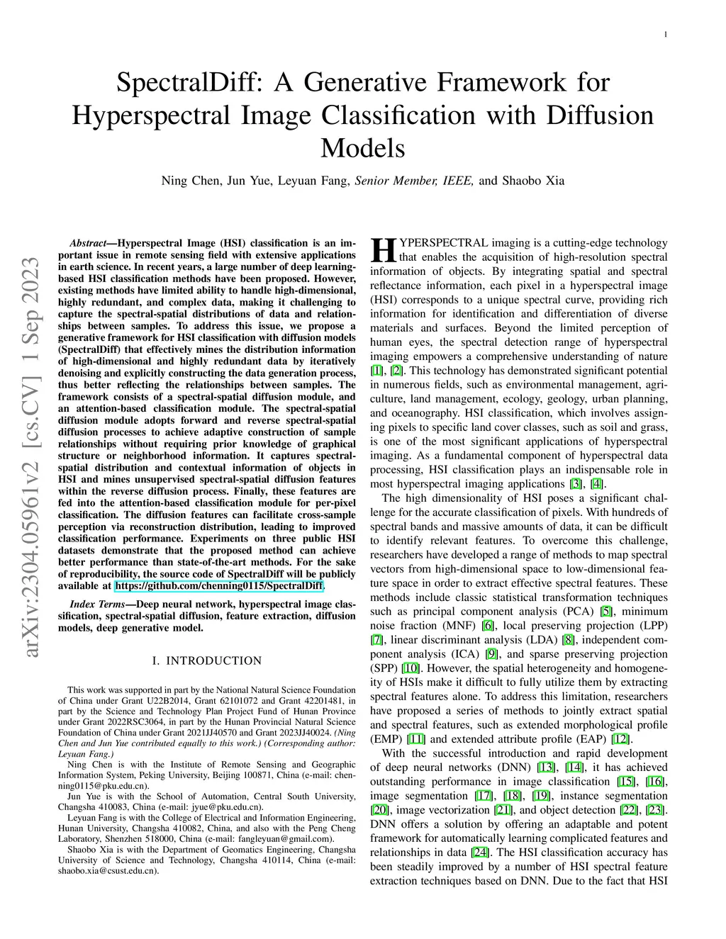 SpectralDiff: A Generative Framework for Hyperspectral Image