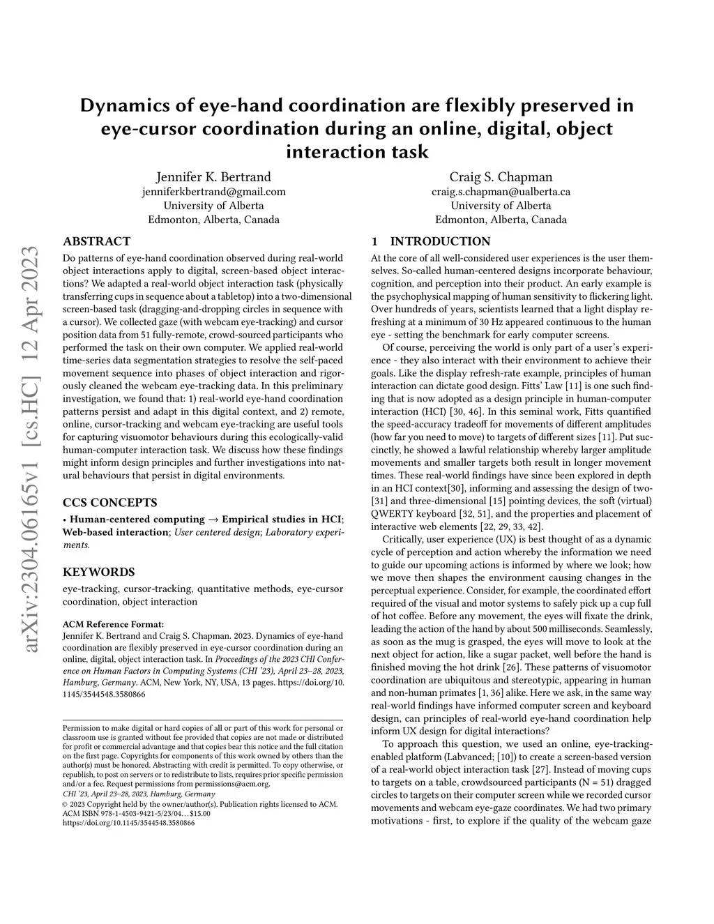 Do patterns of eye-hand coordination observed during real-world object interactions apply to digital, screen-based object interactions? We adapted a real-world object interaction task (physically transferring cups in sequence about a tabletop) into a two-dimensional screen-based task (dragging-and-dropping circles in sequence with a cursor). We collected gaze (with webcam eye-tracking) and cursor position data from 51 fully-remote, crowd-sourced participants who performed the task on their own computer. We applied real-world time-series data segmentation strategies to resolve the self-paced movement sequence into phases of object interaction and rigorously cleaned the webcam eye-tracking data. In this preliminary investigation, we found that: 1) real-world eye-hand coordination patterns persist and adapt in this digital context, and 2) remote, online, cursor-tracking and webcam eye-tracking are useful tools for capturing visuomotor behaviours during this ecologically-valid human-computer interaction task. We discuss how these findings might inform design principles and further investigations into natural behaviours that persist in digital environments.
