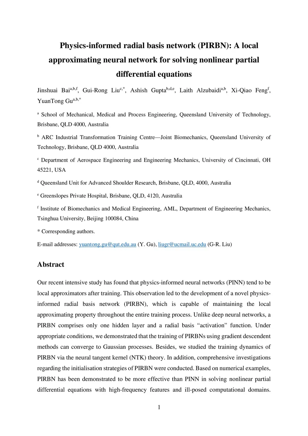Our recent intensive study has found that physics-informed neural networks (PINN) tend to be local approximators after training. This observation leads to this novel physics-informed radial basis network (PIRBN), which can maintain the local property throughout the entire training process. Compared to deep neural networks, a PIRBN comprises of only one hidden layer and a radial basis "activation" function. Under appropriate conditions, we demonstrated that the training of PIRBNs using gradient descendent methods can converge to Gaussian processes. Besides, we studied the training dynamics of PIRBN via the neural tangent kernel (NTK) theory. In addition, comprehensive investigations regarding the initialisation strategies of PIRBN were conducted. Based on numerical examples, PIRBN has been demonstrated to be more effective and efficient than PINN in solving PDEs with high-frequency features and ill-posed computational domains. Moreover, the existing PINN numerical techniques, such as adaptive learning, decomposition and different types of loss functions, are applicable to PIRBN. The programs that can regenerate all numerical results can be found at https://github.com/JinshuaiBai/PIRBN.