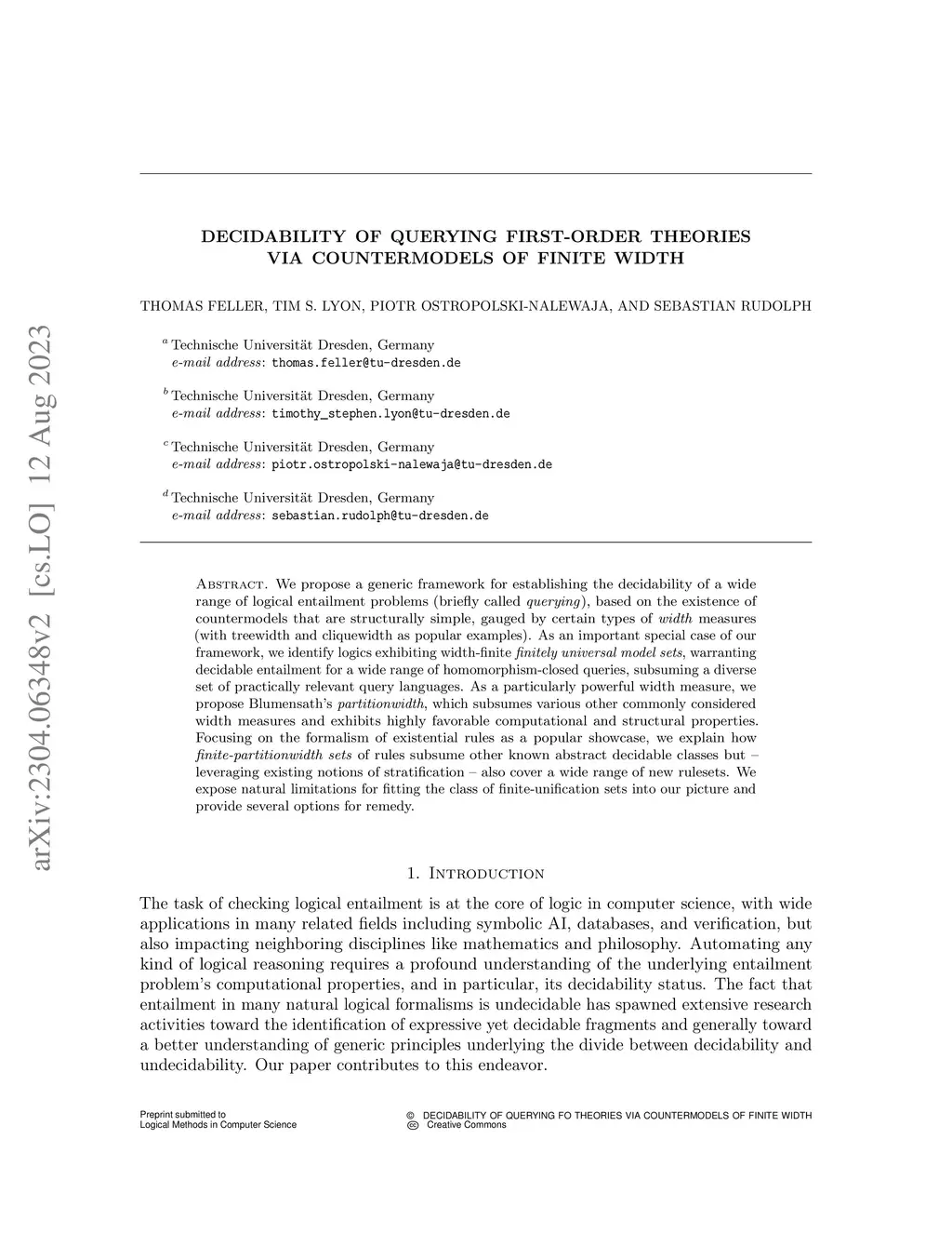 We propose a generic framework for establishing the decidability of a wide range of logical entailment problems (briefly called querying), based on the existence of countermodels that are structurally simple, gauged by certain types of width measures (with treewidth and cliquewidth as popular examples). As an important special case of our framework, we identify logics exhibiting width-finite finitely universal model sets, warranting decidable entailment for a wide range of homomorphism-closed queries, subsuming a diverse set of practically relevant query languages. As a particularly powerful width measure, we propose Blumensath's partitionwidth, which subsumes various other commonly considered width measures and exhibits highly favorable computational and structural properties. Focusing on the formalism of existential rules as a popular showcase, we explain how finite partitionwidth sets of rules subsume other known abstract decidable classes but - leveraging existing notions of stratification - also cover a wide range of new rulesets. We expose natural limitations for fitting the class of finite unification sets into our picture and provide several options for remedy.
