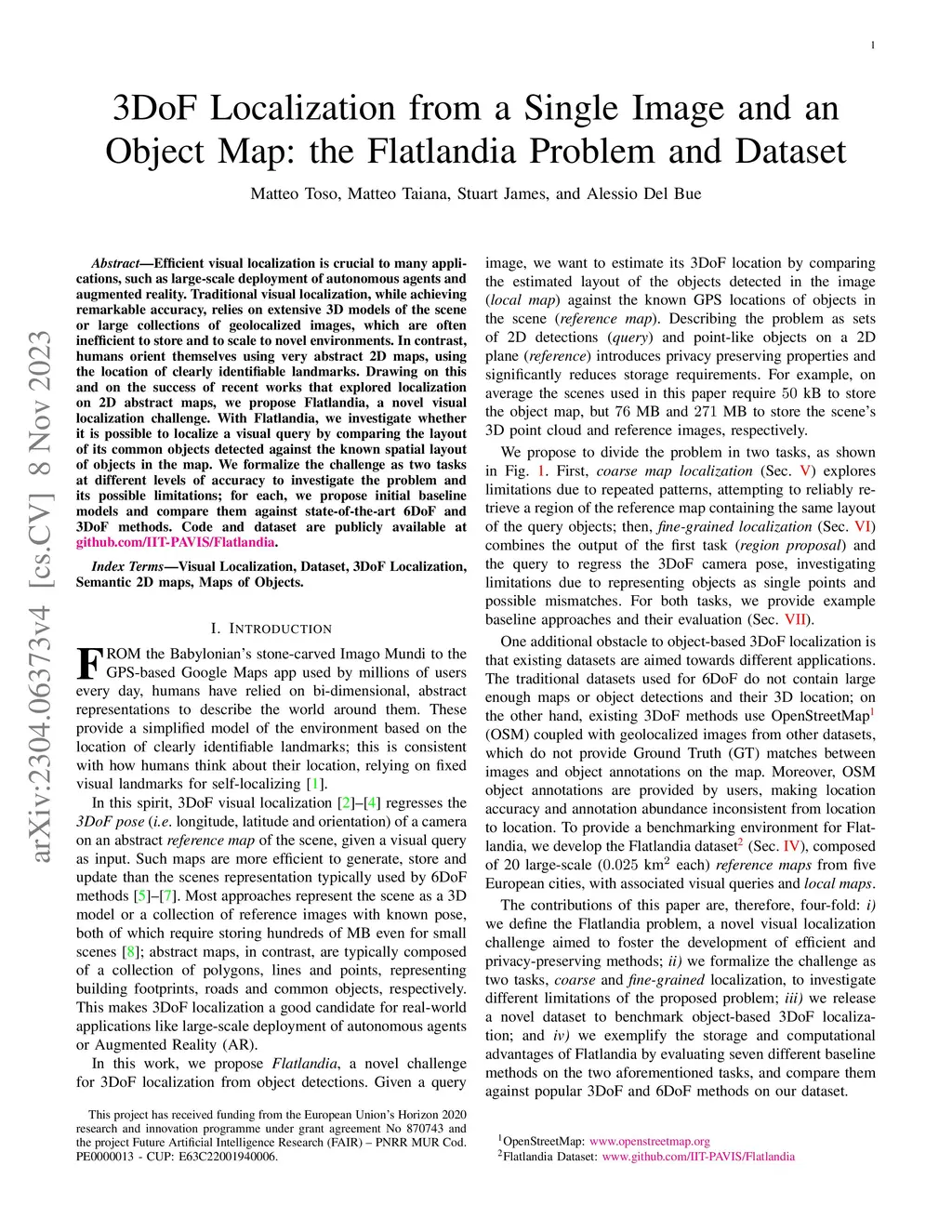 3DoF Localization from a Single Image and an Object Map: the Flatlandia
