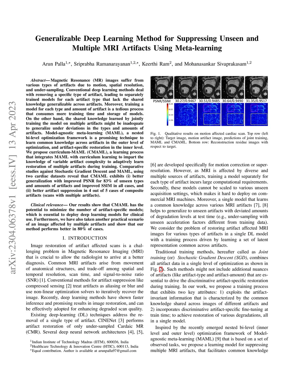 MRI Artifacts Using Meta-learning