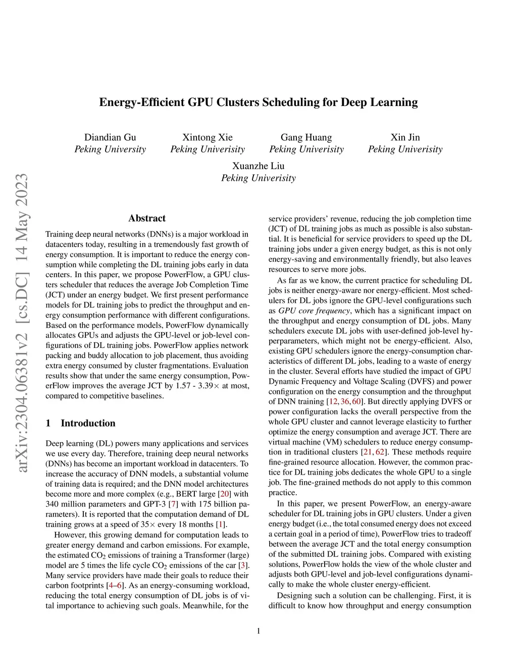 Energy-Efficient GPU Clusters Scheduling for Deep Learning