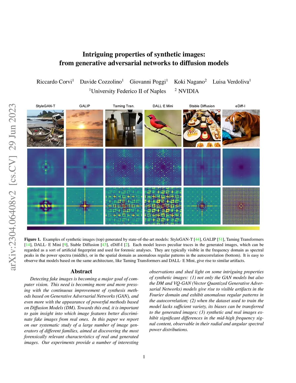 Detecting fake images is becoming a major goal of computer vision. This need is becoming more and more pressing with the continuous improvement of synthesis methods based on Generative Adversarial Networks (GAN), and even more with the appearance of powerful methods based on Diffusion Models (DM). Towards this end, it is important to gain insight into which image features better discriminate fake images from real ones. In this paper we report on our systematic study of a large number of image generators of different families, aimed at discovering the most forensically relevant characteristics of real and generated images. Our experiments provide a number of interesting observations and shed light on some intriguing properties of synthetic images: (1) not only the GAN models but also the DM and VQ-GAN (Vector Quantized Generative Adversarial Networks) models give rise to visible artifacts in the Fourier domain and exhibit anomalous regular patterns in the autocorrelation; (2) when the dataset used to train the model lacks sufficient variety, its biases can be transferred to the generated images; (3) synthetic and real images exhibit significant differences in the mid-high frequency signal content, observable in their radial and angular spectral power distributions.