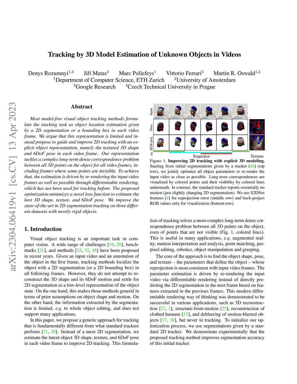 Tracking by 3D Model Estimation of Unknown Objects in Videos