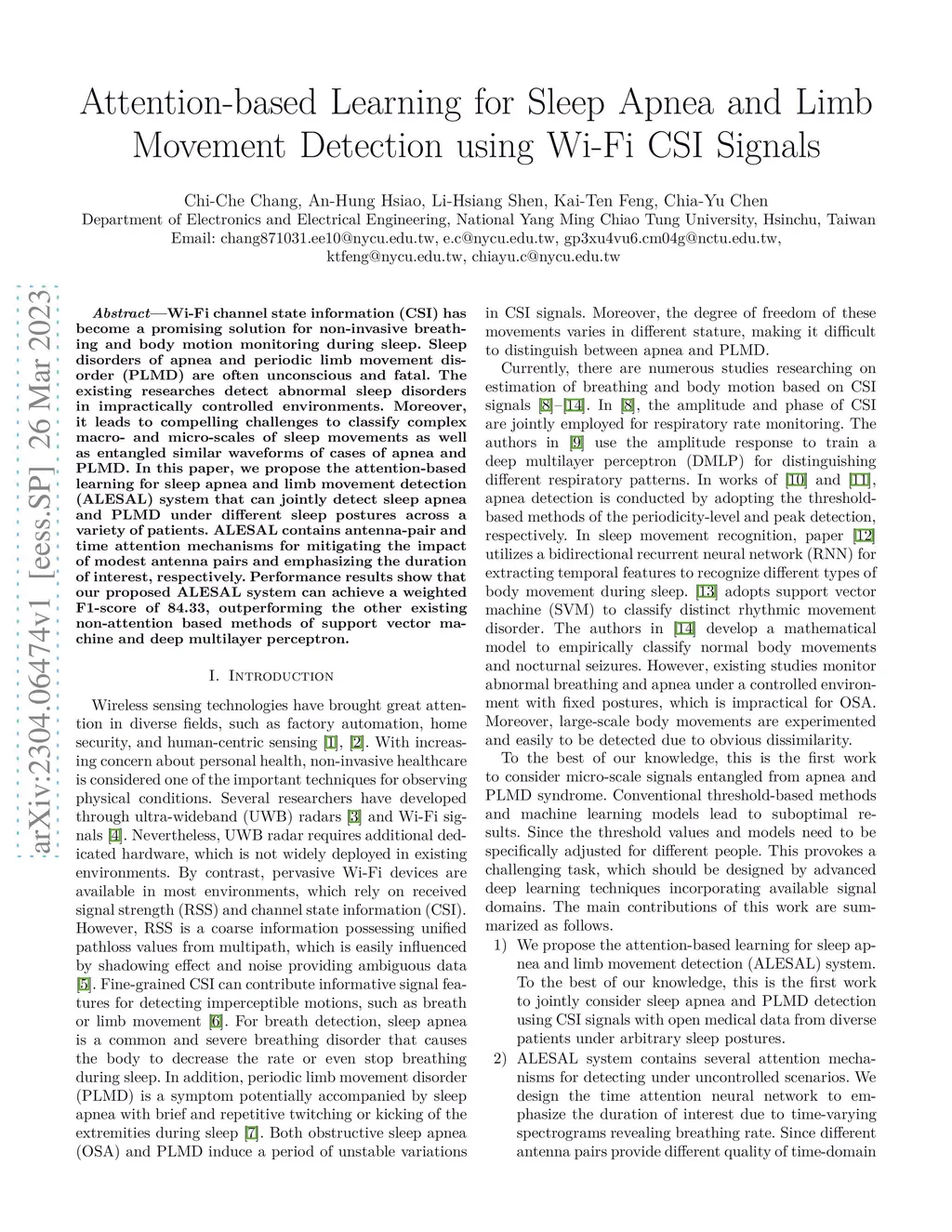 Wi-Fi channel state information (CSI) has become a promising solution for non-invasive breathing and body motion monitoring during sleep. Sleep disorders of apnea and periodic limb movement disorder (PLMD) are often unconscious and fatal. The existing researches detect abnormal sleep disorders in impractically controlled environments. Moreover, it leads to compelling challenges to classify complex macro- and micro-scales of sleep movements as well as entangled similar waveforms of cases of apnea and PLMD. In this paper, we propose the attention-based learning for sleep apnea and limb movement detection (ALESAL) system that can jointly detect sleep apnea and PLMD under different sleep postures across a variety of patients. ALESAL contains antenna-pair and time attention mechanisms for mitigating the impact of modest antenna pairs and emphasizing the duration of interest, respectively. Performance results show that our proposed ALESAL system can achieve a weighted F1-score of 84.33, outperforming the other existing non-attention based methods of support vector machine and deep multilayer perceptron.