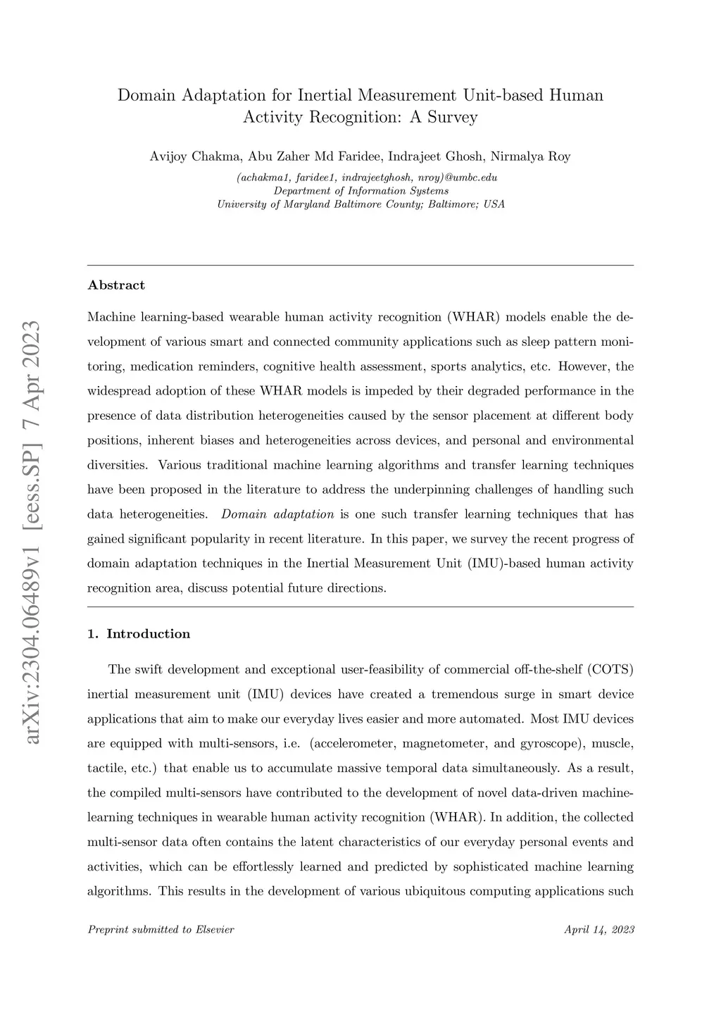 Domain Adaptation for Inertial Measurement Unit-based Human Activity