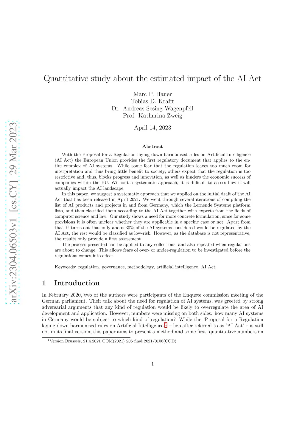 Quantitative study about the estimated impact of the AI Act