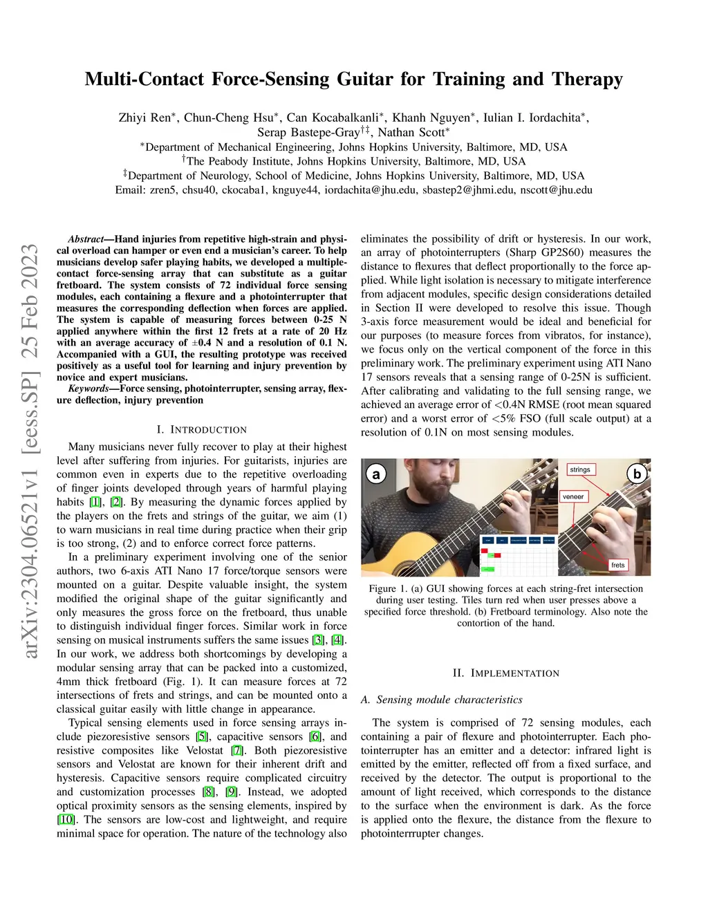 Multi-Contact Force-Sensing Guitar for Training and Therapy