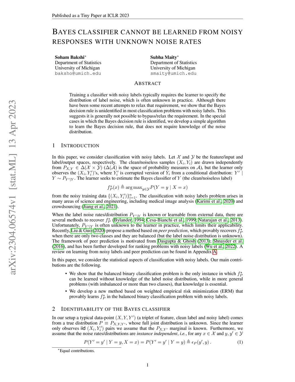 Training a classifier with noisy labels typically requires the learner to specify the distribution of label noise, which is often unknown in practice. Although there have been some recent attempts to relax that requirement, we show that the Bayes decision rule is unidentified in most classification problems with noisy labels. This suggests it is generally not possible to bypass/relax the requirement. In the special cases in which the Bayes decision rule is identified, we develop a simple algorithm to learn the Bayes decision rule, that does not require knowledge of the noise distribution.