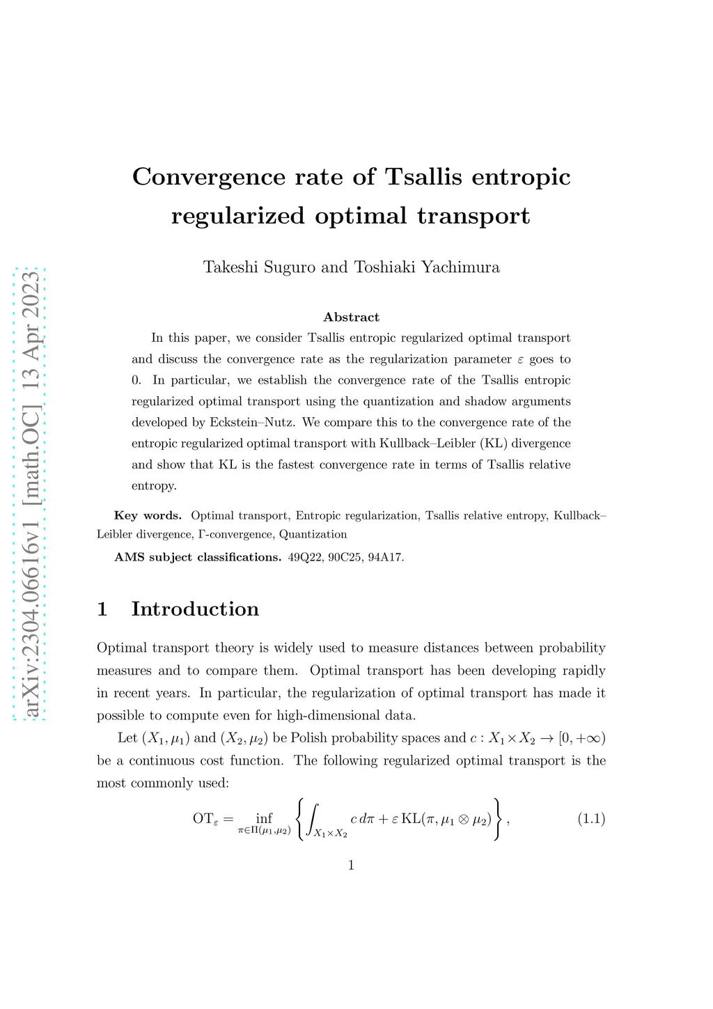 In this paper, we consider Tsallis entropic regularized optimal transport and discuss the convergence rate as the regularization parameter goes to . In particular, we establish the convergence rate of the Tsallis entropic regularized optimal transport using the quantization and shadow arguments developed by Eckstein--Nutz. We compare this to the convergence rate of the entropic regularized optimal transport with Kullback--Leibler (KL) divergence and show that KL is the fastest convergence rate in terms of Tsallis relative entropy.
