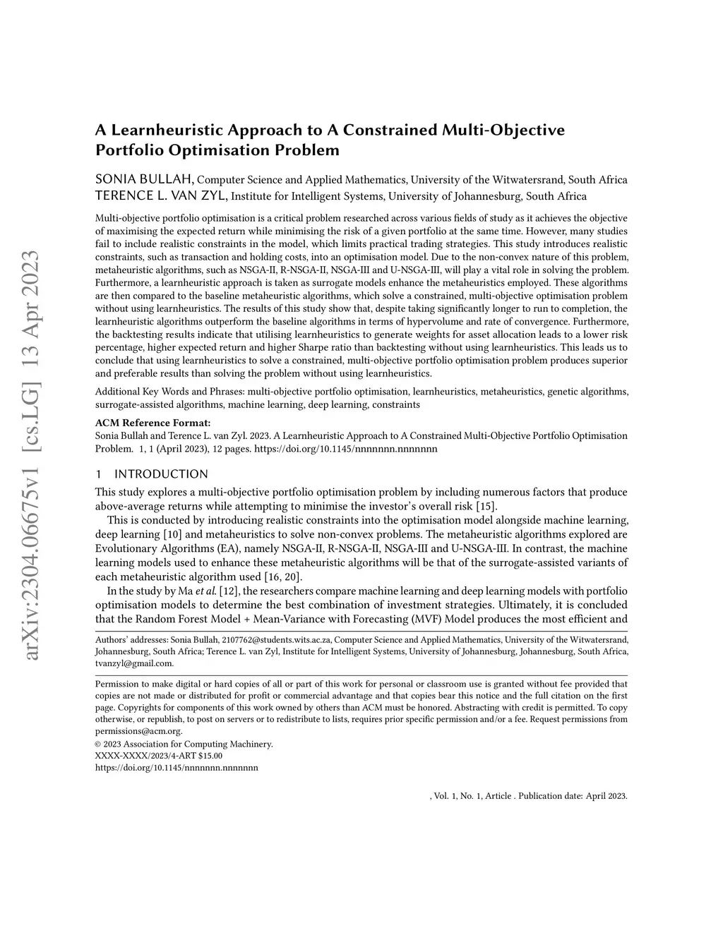 A Learnheuristic Approach to A Constrained Multi-Objective Portfolio
