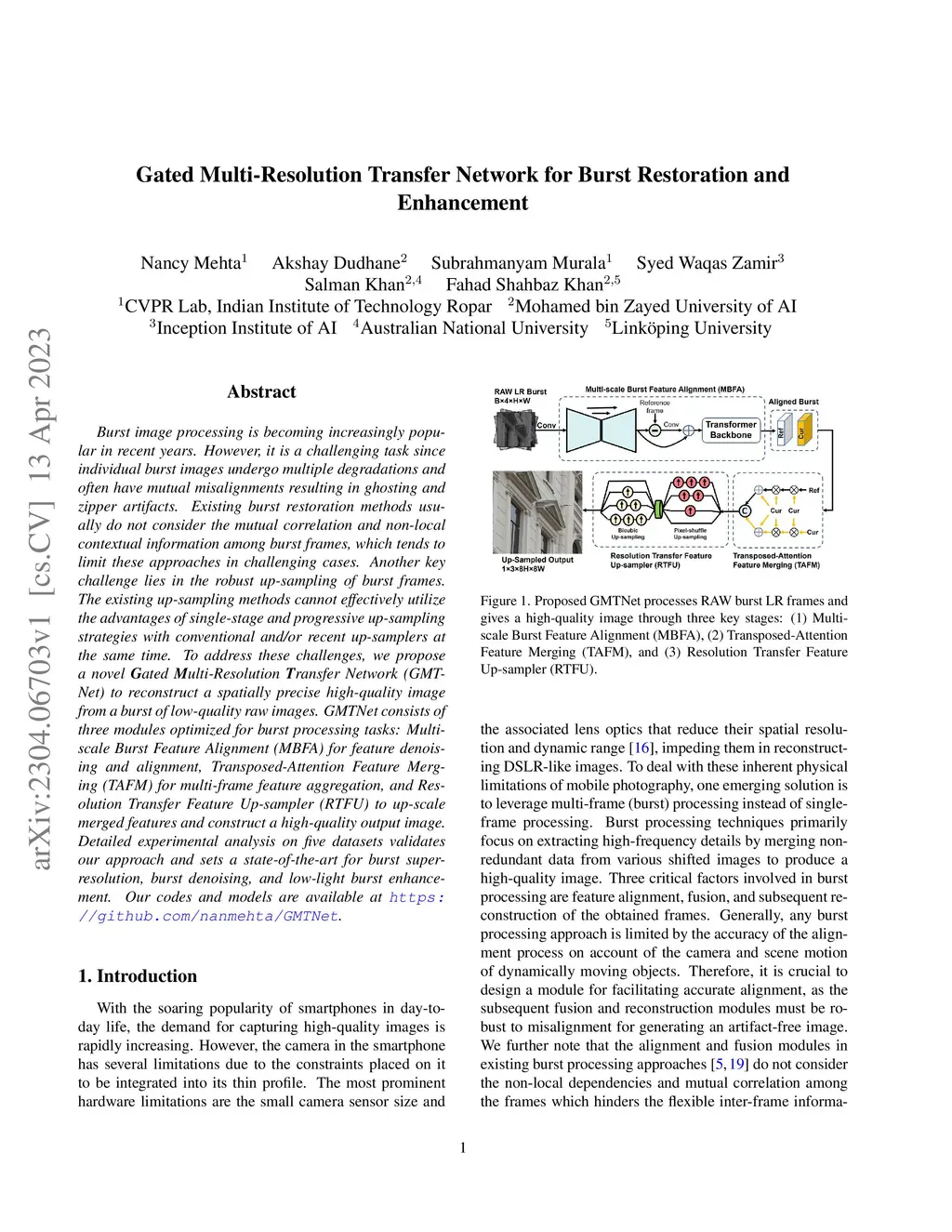 Gated Multi-Resolution Transfer Network for Burst Restoration and