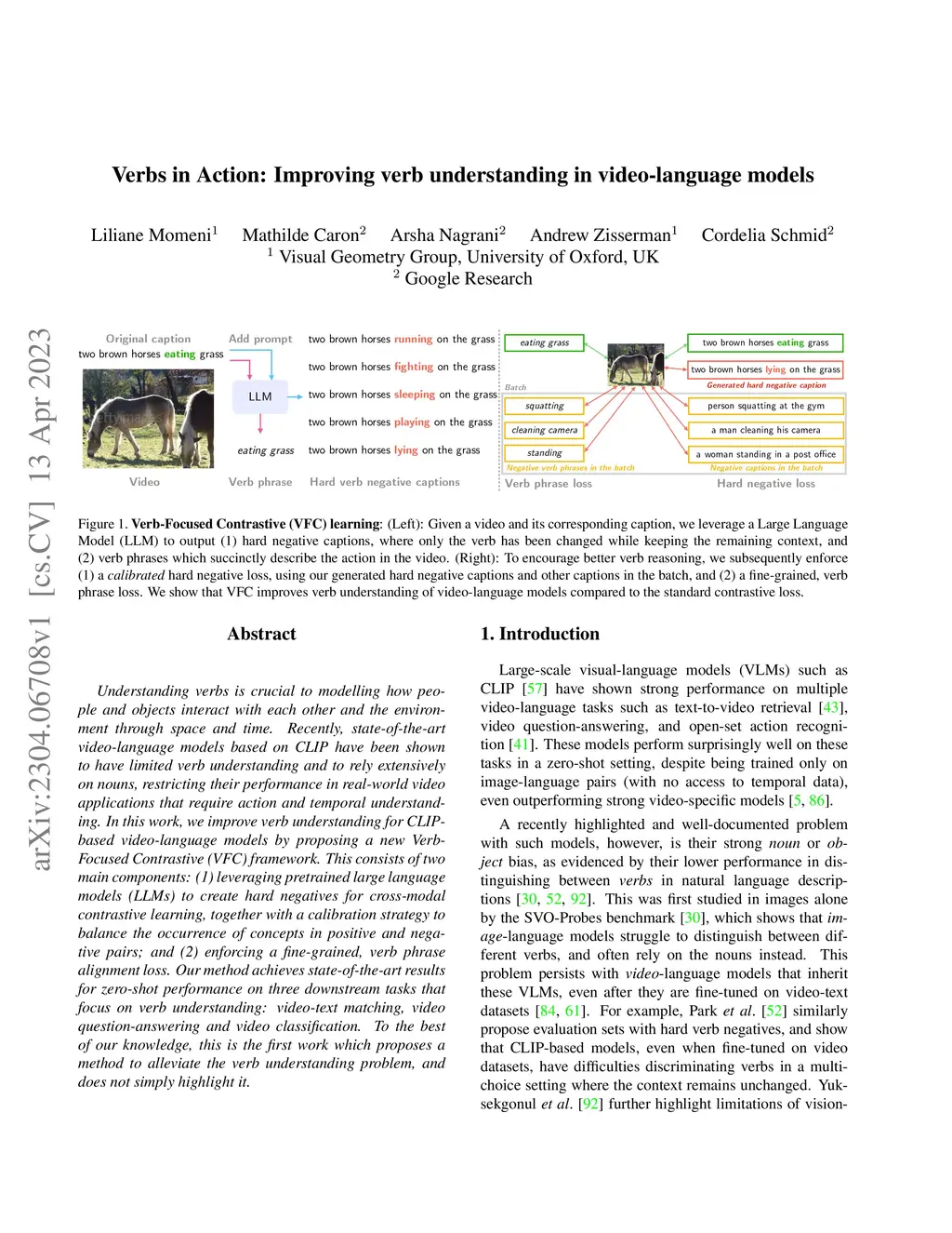 Understanding verbs is crucial to modelling how people and objects interact with each other and the environment through space and time. Recently, state-of-the-art video-language models based on CLIP have been shown to have limited verb understanding and to rely extensively on nouns, restricting their performance in real-world video applications that require action and temporal understanding. In this work, we improve verb understanding for CLIP-based video-language models by proposing a new Verb-Focused Contrastive (VFC) framework. This consists of two main components: (1) leveraging pretrained large language models (LLMs) to create hard negatives for cross-modal contrastive learning, together with a calibration strategy to balance the occurrence of concepts in positive and negative pairs; and (2) enforcing a fine-grained, verb phrase alignment loss. Our method achieves state-of-the-art results for zero-shot performance on three downstream tasks that focus on verb understanding: video-text matching, video question-answering and video classification. To the best of our knowledge, this is the first work which proposes a method to alleviate the verb understanding problem, and does not simply highlight it.