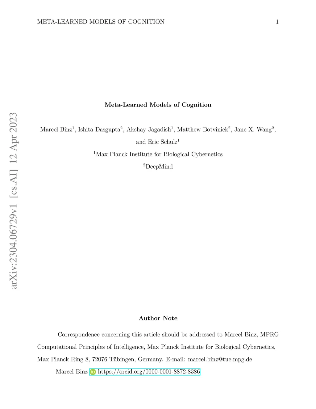 Meta-Learned Models of Cognition