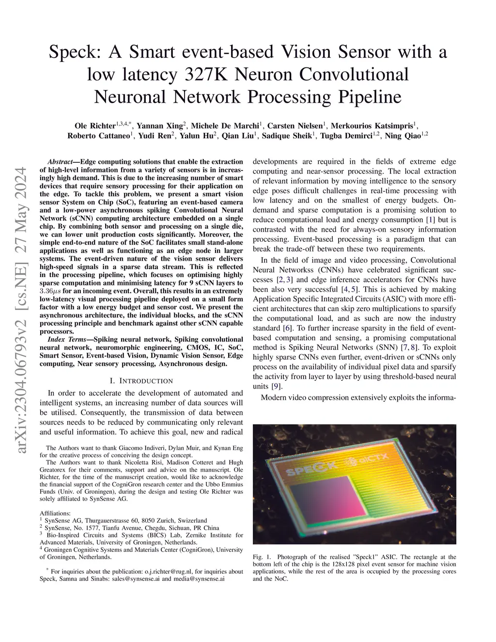 Speck: A Smart event-based Vision Sensor with a low latency 327K Neuron